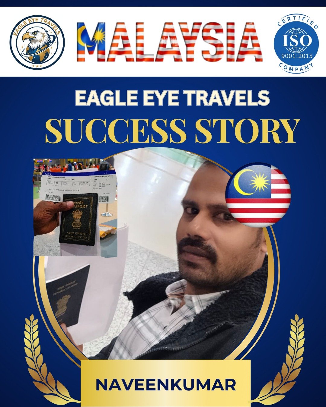 Naveenkumar achieved his goal of working overseas in Malaysia through the dedicated support of Eagle Eye Travels Madurai. Our team assisted him with job processing, documentation preparation, visa guidance, and travel coordination. Through careful planning and step-by-step assistance, he completed the process smoothly and traveled safely to begin his employment abroad. His successful placement highlights the importance of proper documentation and professional guidance. We are proud to support candidates like Naveenkumar in starting secure and legal overseas careers.